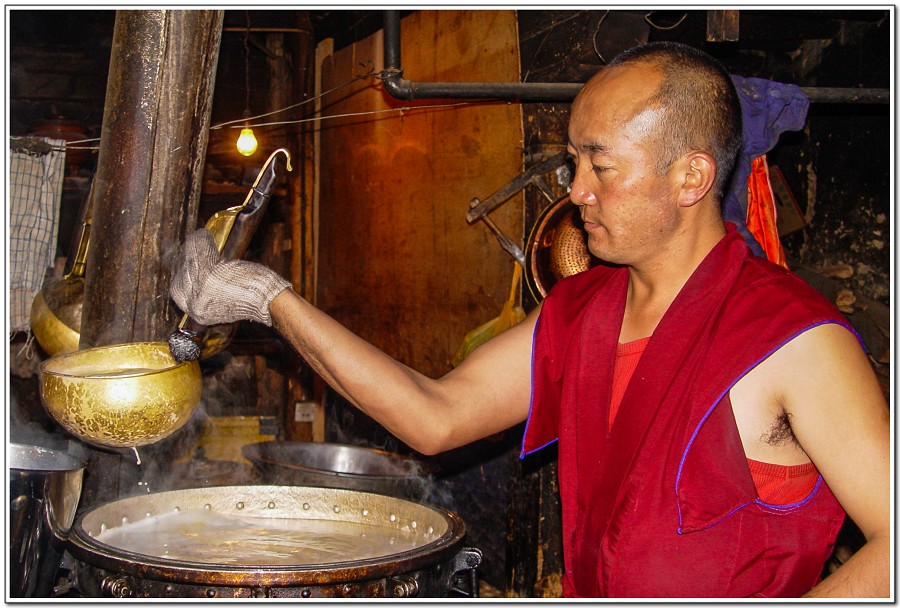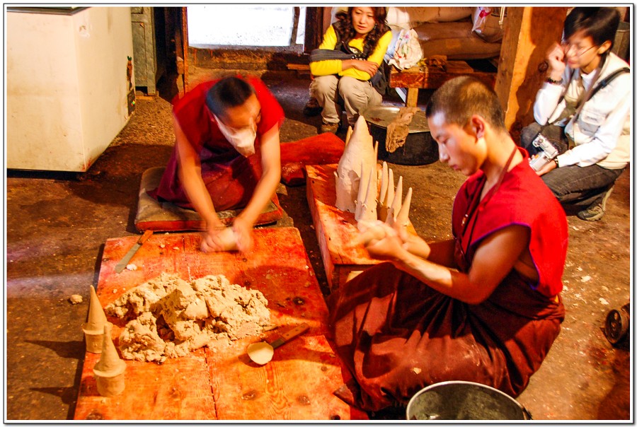 年輕的喇嘛們在忙著做糌粑塔,祭祀用!