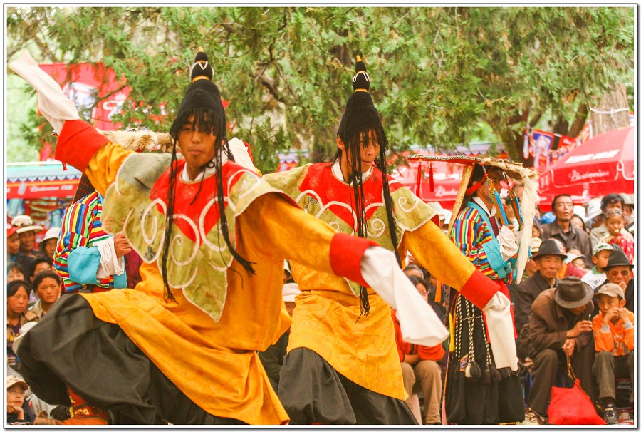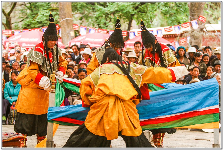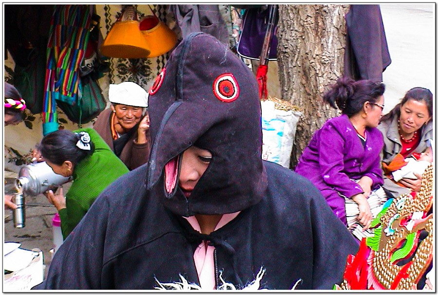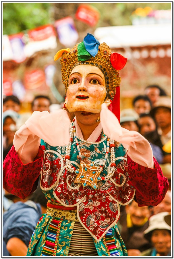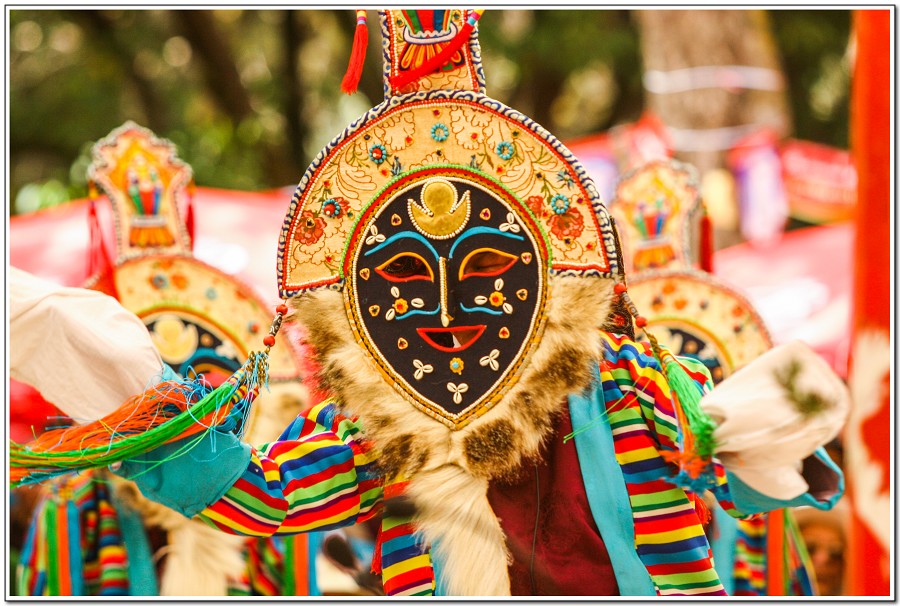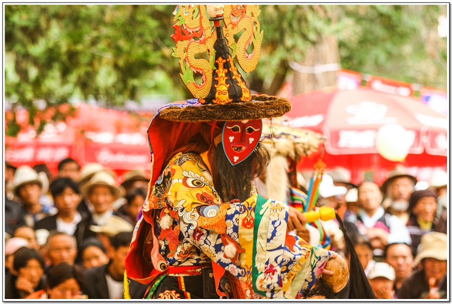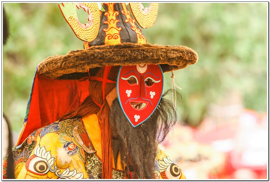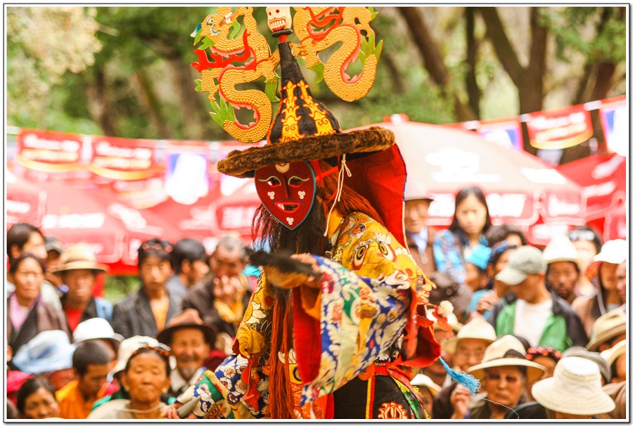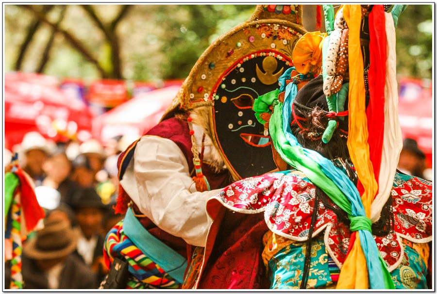 面具舞,是方便達賴喇嘛在遠處就能欣賞,誇張的表情據說也可以趨魔避邪!