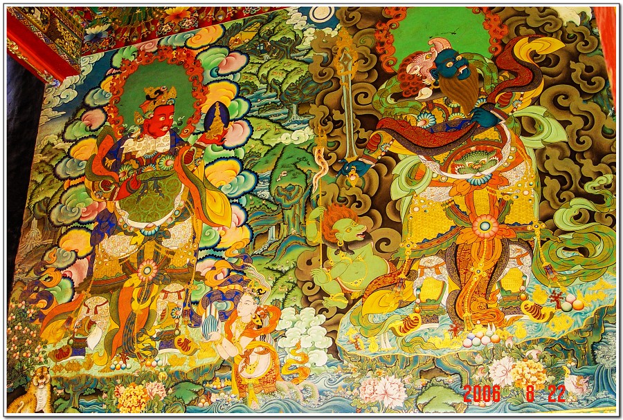 羅布林卡原本是達賴喇嘛的夏宮,主殿內牆四周的壁畫刻述了西藏悠久的歷史,裡頭還有小型動物園,我們沒進去參觀,急迫著想見識神秘的面具舞!