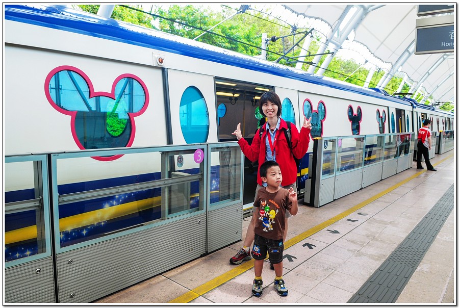 從深圳羅湖搭『東鐵線』到『太子』,從『太子』轉『荃灣線』到『荔景』,從『荔景』轉『東涌線』到『欣澳』,(東涌線的『湧』,廣東話發音是『沖』)不是繞口令,而是特地帶Eric去地鐵『欣澳站』搭『迪士尼線電車』!
