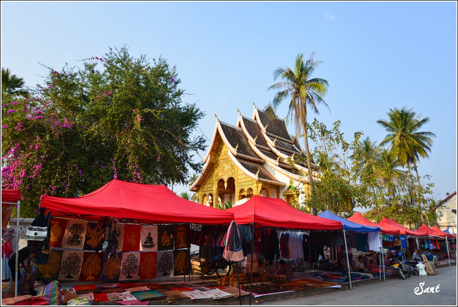 龍拉邦主要大街Savangvong路,白天是重要道路,傍晚開始封街變身成夜市。