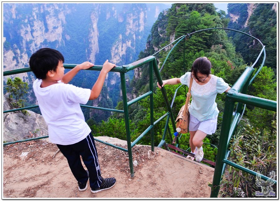 早上離開一步登天後前往空中走廊,景區公車上來一位年輕漂亮正點咩,老灰狼眼看有機可乘,趕緊打暗號給Eric,父子倆一搭一唱把美咩釣上來,老灰狼似乎跟來自張家界山下的芊芊美咩聊太多,發手機相片時才發現沒拍到半張芊芊咩的相片-_-#,照片都在D800裡^_^
