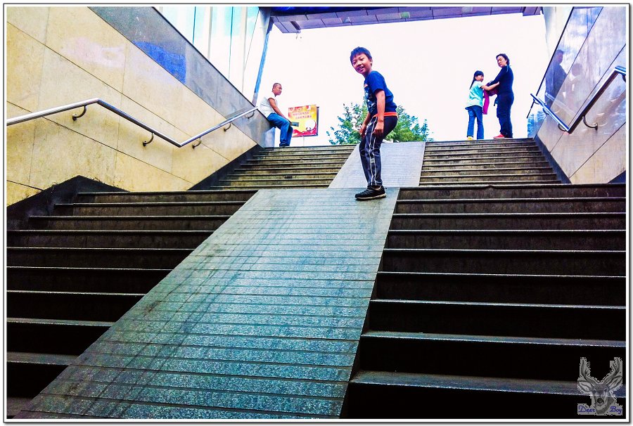 回到烏魯木齊,我們每次走這人行地下道時Eric都要在樓梯間玩溜滑梯,玩好久,他說是學成龍的,玹玹要求趙小姐也讓她玩,她娘本來不答應,後來沒意見了,玹玹高興的跟著學,結果溜第一回就摔了,還好是底下那一段,不高,所幸摔的不嚴重!