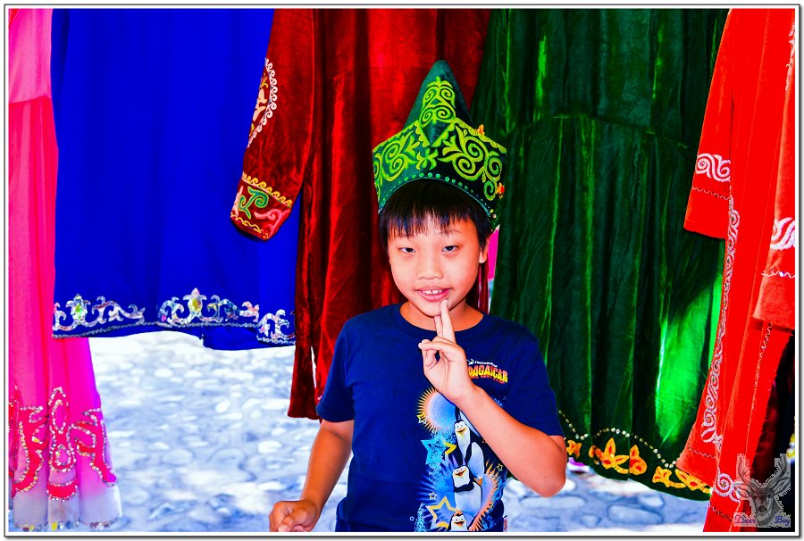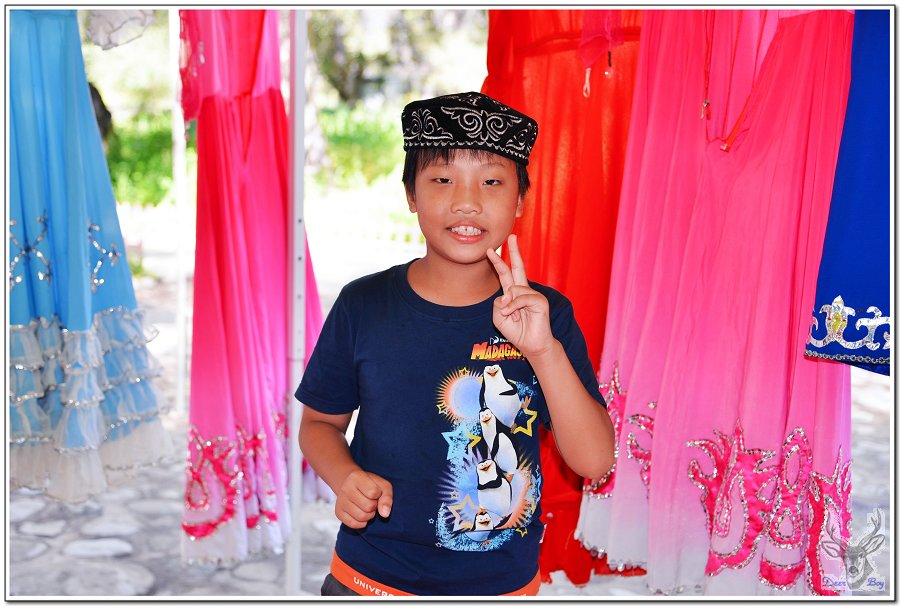 維吾爾民族服裝免費借用拍照,屬於蛋頭的Eric腮幫子肉多戴起維吾爾的帽子像古代維族的王子!