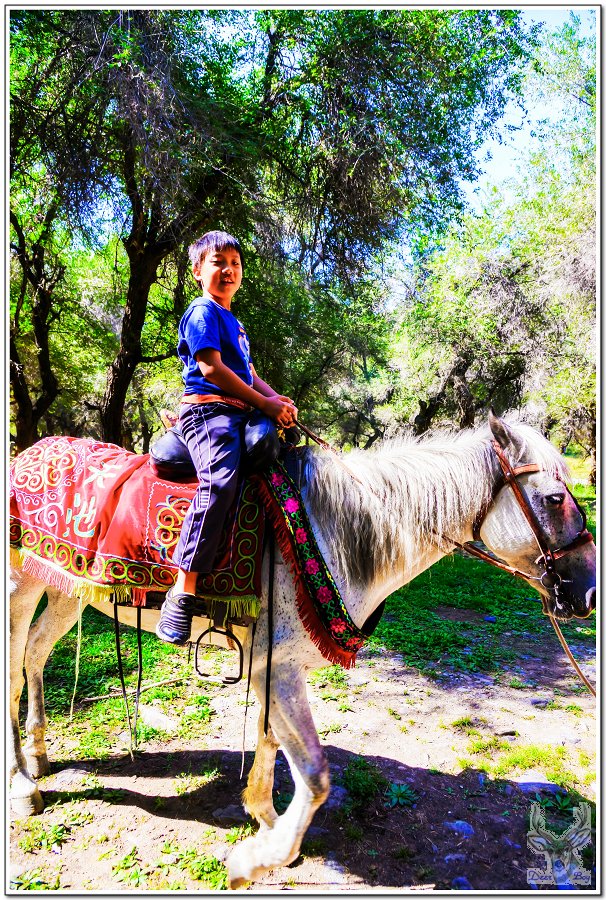 因為走出樹林有一段距離,老闆娘懶得拉出去太陽下讓我們拍照,加上馬兒、駱駝偶爾會動一下,所以這幾張相片一直找不到光線比較好的地方拍照,拍的2266,不是光線不足就是逆光沒打閃燈,白馬王子變成黑臉王子!