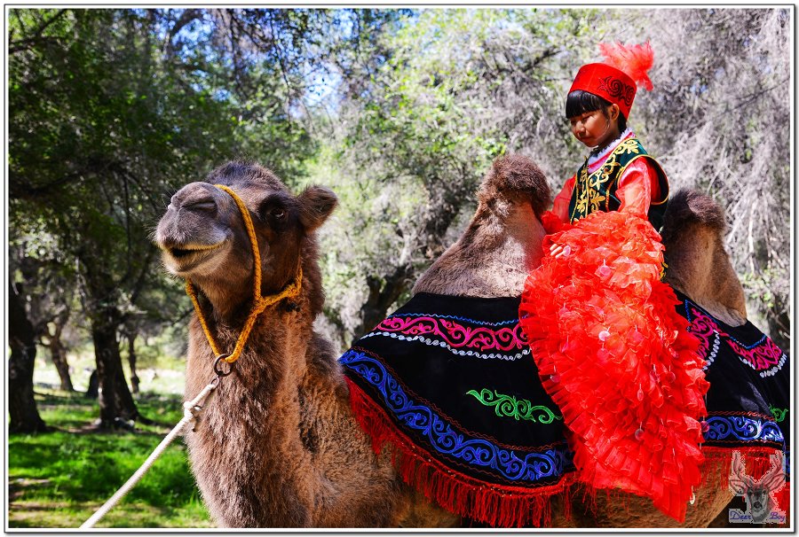這裡有駱駝可以騎,Eric鐵定不放過,騎駱駝拍照每人40人民幣,剛好跟玹玹拍王子娶公主的定裝照!Eric瞅到旁邊虛累累的一匹白馬,說他今天不騎駱駝要騎白馬!