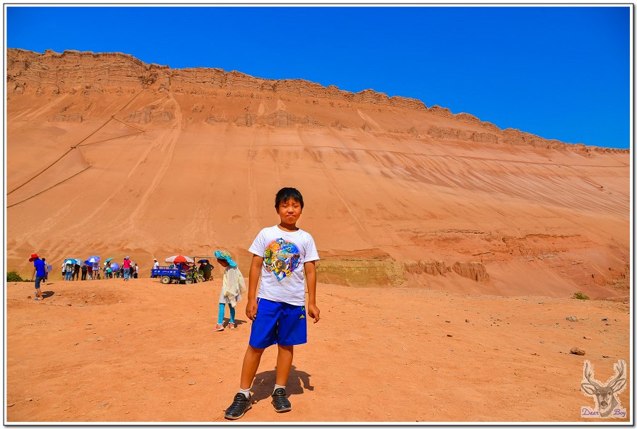 請小紅帽麥擱唉啊,今天我們的行程是拉車到吐魯番盆地一日往返,要進入全中國最熱的地帶ㄟ,吐魯番昨日還上北京新聞台,創下52度歷史紀錄,老灰狼肖想旅遊新疆多年,遲遲不敢出發,就是怕被新疆的高溫烤成老焦狼啊,這回是拼老命帶Eric很狠賭一回,不死在那裡就有機會寒假挑戰埃及一個月!