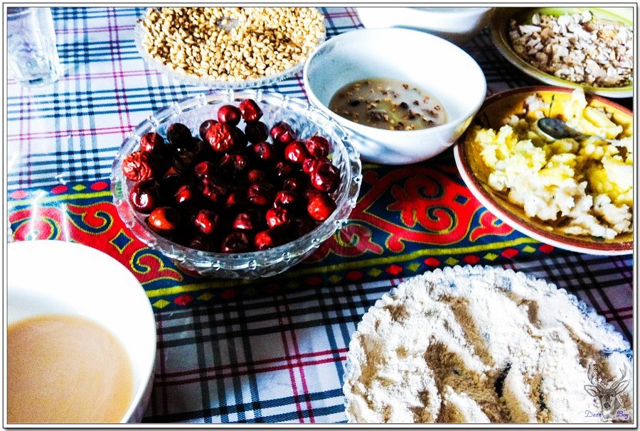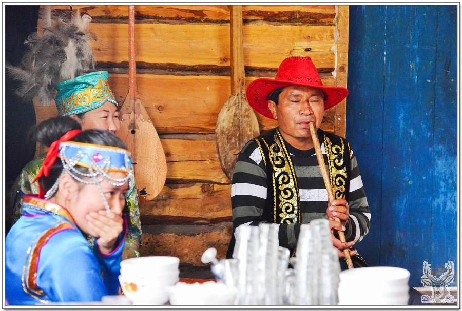 極少數民族〜圖瓦族民居,圖瓦族散佈新疆、蘇聯等地,人數約20萬,在喀納斯居住的約2千人,我們接受圖瓦人的載歌載舞、圖瓦人瀕臨失傳的樂器演奏,馬奶酒〜哈哈,只有我和一位湖南王接受馬奶酒款待,以及酥油茶、乾果招待。