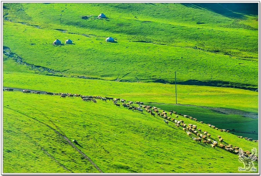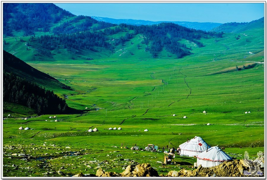 布爾津縣位在新疆極北地帶跟蒙古地區接壤,所以有濃厚的蒙古風味,下面幾張照片都是在遊覽車拍的,光線沒抓準或者是是輕微晃動在所難免,老灰狼難得出門搭車沒睡覺,漂亮的風光捨不得闔眼!