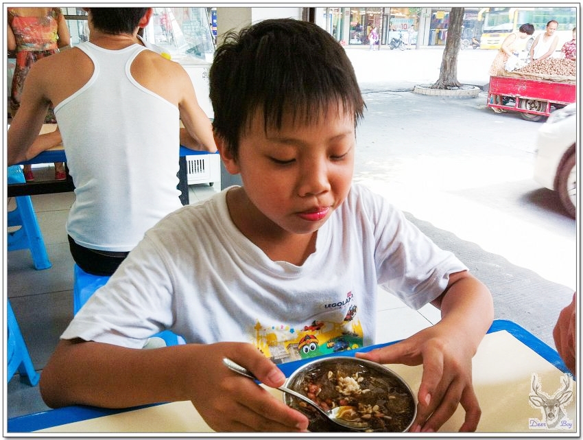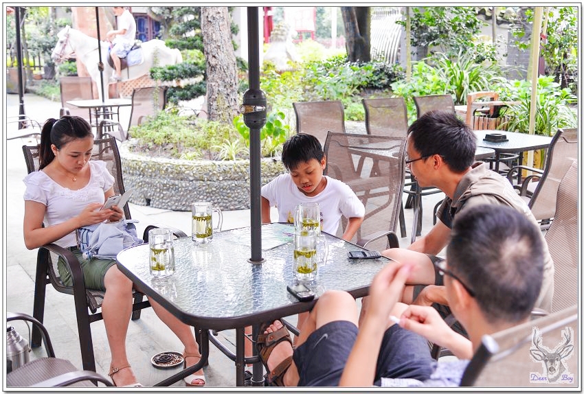 雖然桌椅下面都點了好幾盤蚊香,可是蚊蟲實在多,Eric被蚊蟲戲謔的的哇哇叫,我們是撐到喝完一杯竹葉青後再上路!
