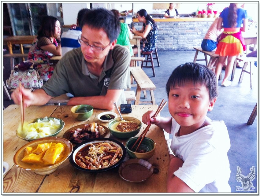 呂老師說他有一位體育學院同學老家就在這裡,在還沒發展農科村時家境有點窮困,開發農科村之後,剛好碰上國家的經濟富裕,人們有錢了會想回味或嘗試田園農村樂,讓這裡的農家快速致富,他的老同學早已辭去教育工作,現在是靠家裡做生意,他經常在國外旅行,這幾天剛好在國外,呂老師說他同學家訂的價格比較貴,同學又不在家,所以我們今天不去捧場,到別家比較平價的農村樂喝茶、逛逛!