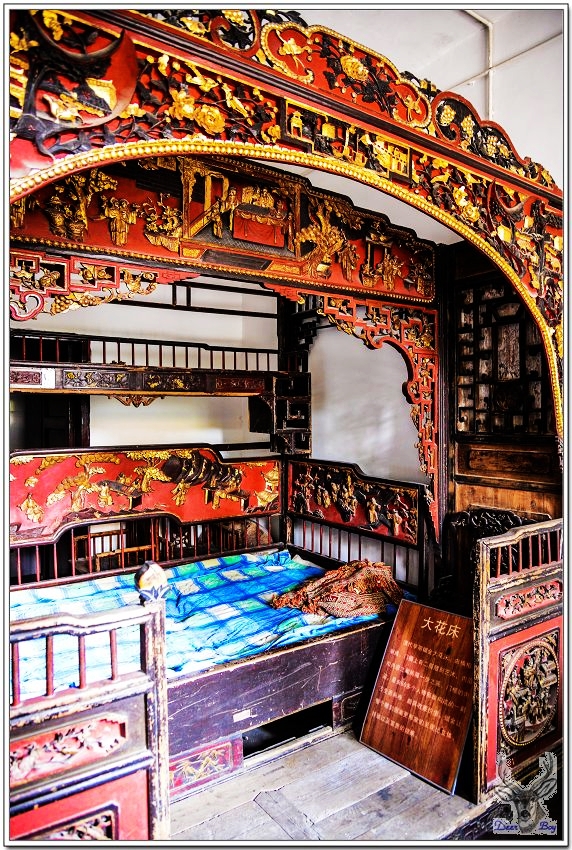 這家子有錢了,拼命到民間鄉下敗古早的日常生活用品、藝術蒐集品等等,通通先搞回家,買了一屋子又一屋子的寶貝堆積成像還沒整理的資源回收場!老灰狼小時候一家5口通通擠在一張『八卦床』,內地富紳、豪門則用『大花床』,跟閩南地區的設計風格不同!