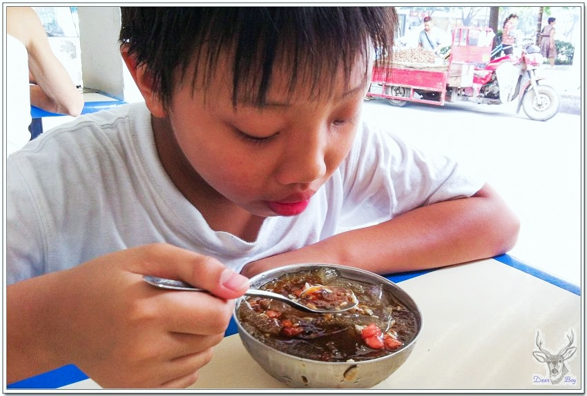 魏記涼粉差不多甘州街的『呷二嘴』的粉粿配上花生果粒、葡萄乾、杏仁片,還有西瓜再配上糖水和花生粉,雜七雜八的味道摻在一塊,醬子一碗不便宜ㄟ,老灰狼覺得一碗太少,但是又不會再想吃第二碗,因為糖水太甜!