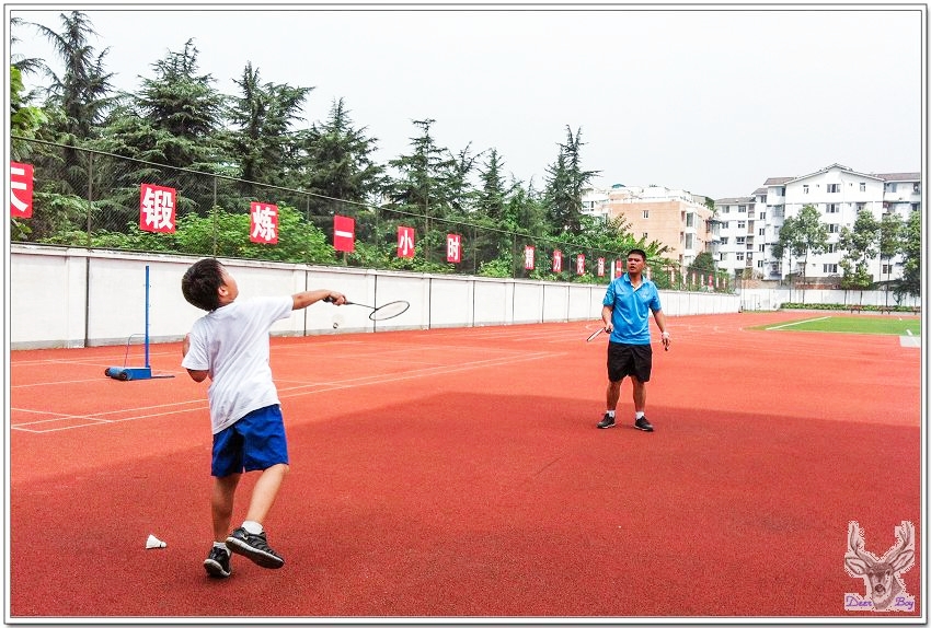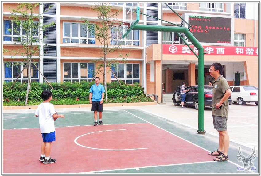 呂老師說帶我們來到華西中小學,是他以前服務的學校,呂老師的老同事~倪老師本來是我們今天的司機,因為臨時有事跑不開,沒辦法當我們的司機,倪老師跟呂老師一樣擔任體育老師,剛好有短暫空檔讓Eric集訓一下籃球和羽毛球!