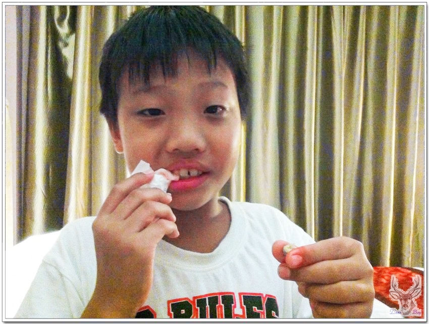 晚餐豐盛的個人涮涮鍋大餐,Eric跟姊姊們話多,沒啥吃,也是因為他的乳牙還有2顆會搖晃,沒有心思咬食物!暑假前帶他去牙科檢查,醫師說4顆才開始搖晃,正常情形可以撐到暑假結束,他受不鳥搖搖晃晃的牙齒,出遊到今天已經被他自己拔掉2顆,今晚他又搖下一顆orz