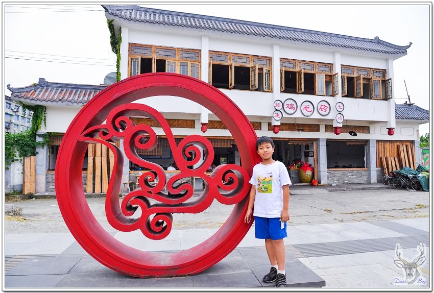 『雞毛店』前方這組紅色的標誌就有典故了,呂老師說郫縣是古蜀國之發源地,古蜀國是一個古代國名,被秦朝所滅,不是三國演義中的蜀國!郫縣是古地名,古代蜀國古都,從帝化血杜鵑的由來,郫縣也稱鵑城!