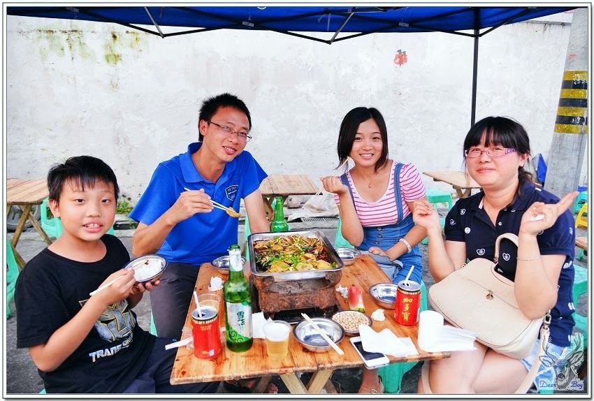 來到附近的夜市,本來要吃烤肉,因為烤肉攤的桌椅太矮,唐糖老師試坐了一下感覺真的不方便~迷你裙太短,只好換別家桌椅比較高的小吃攤,找來找去只有這家的椅子比較高!呂老師點了干鍋兔肉、水煮吳郭魚,媽鴨,通通好辣,Eric連灌了4罐王老吉,我含淚喝了3罐,太辣了!