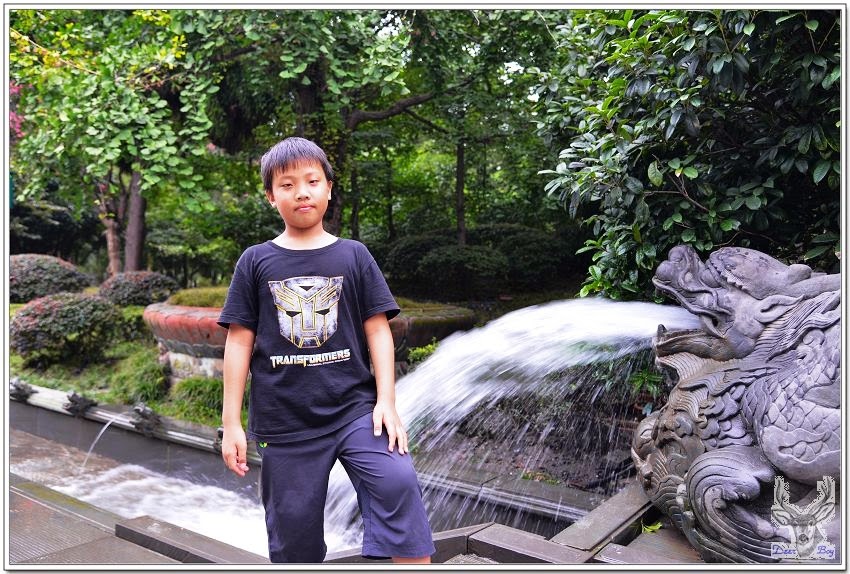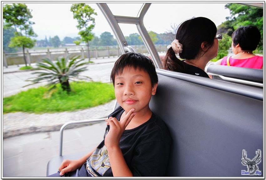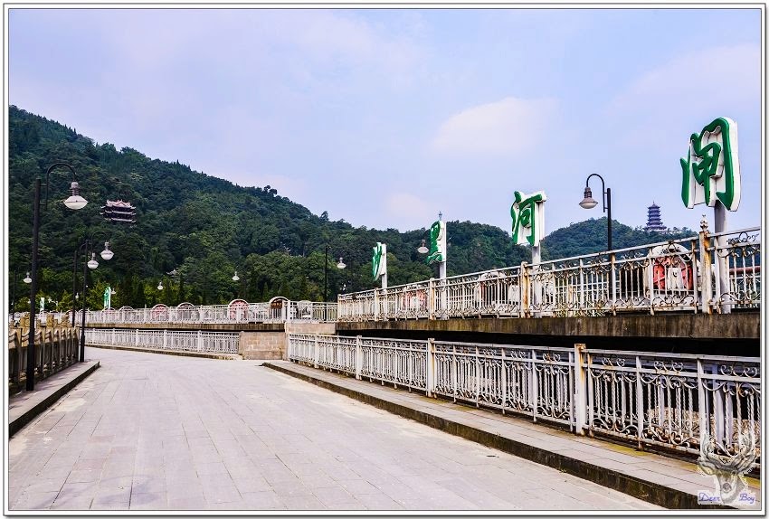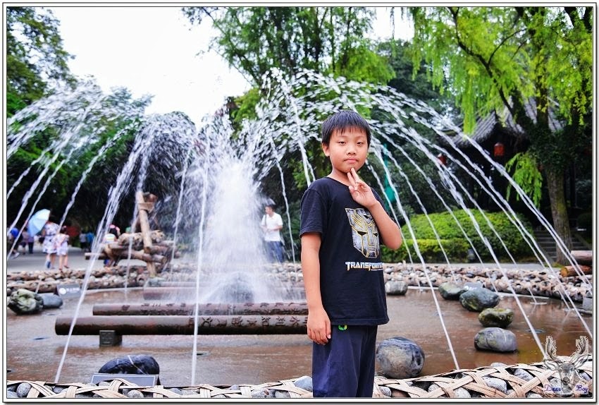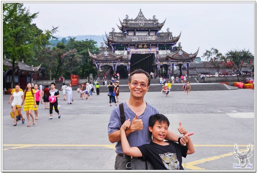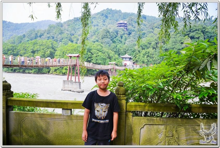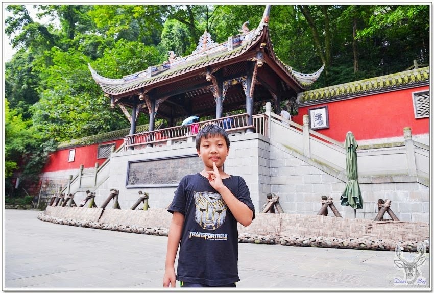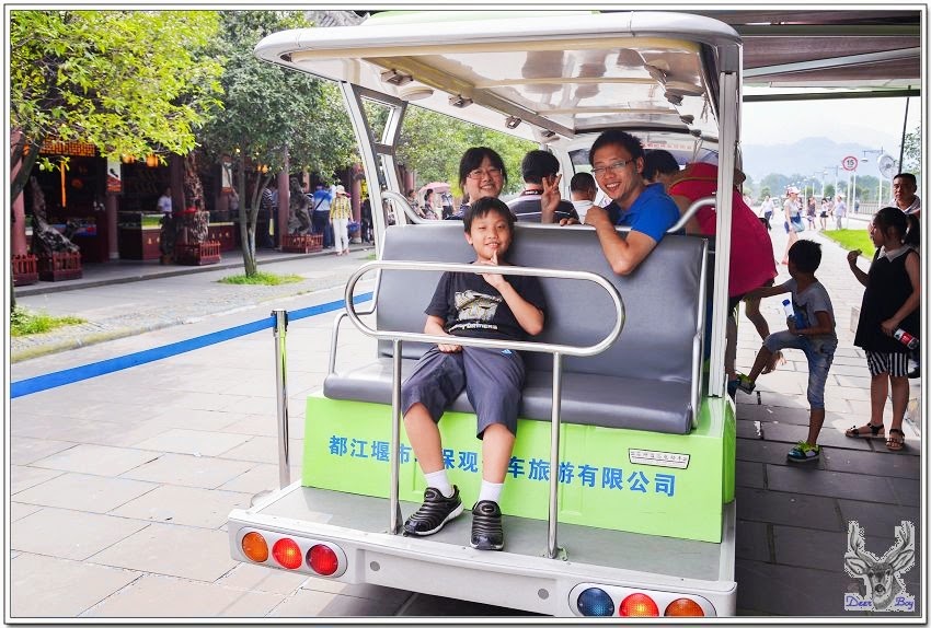 中午時分天氣非常炎熱,戶外溫度超過40度,都江堰這裡應該略低於40度,還是異常悶熱,搭景區環保車省一段走路!