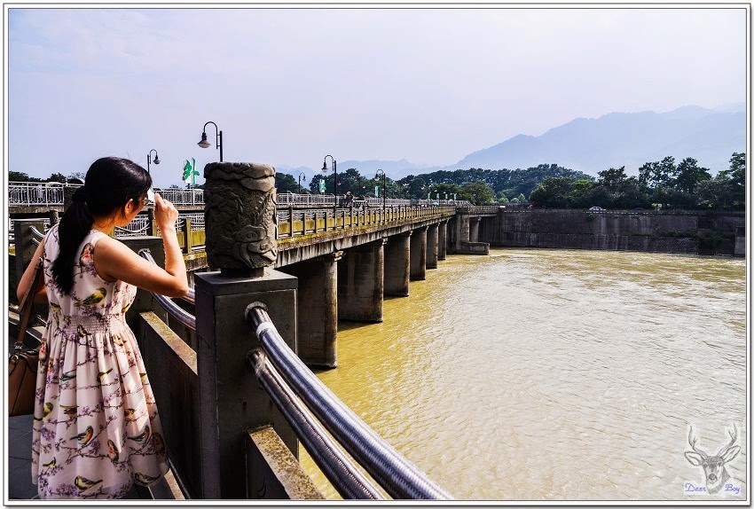 左側是『寶瓶口』,中央土堆是『離堆』。