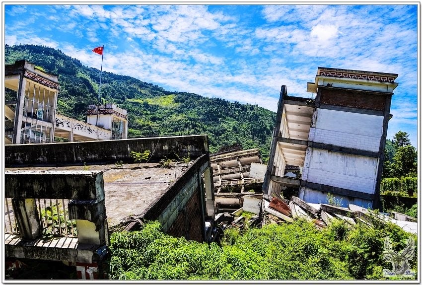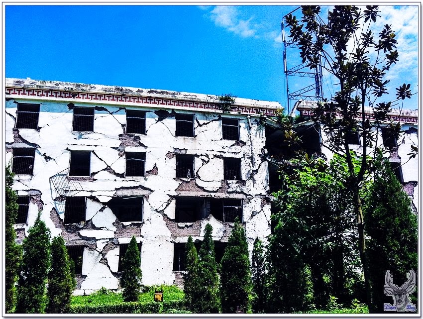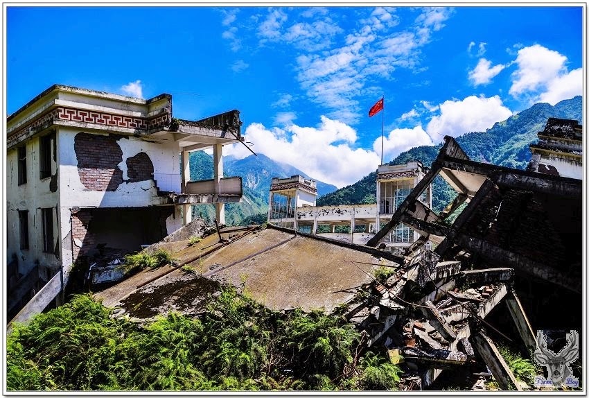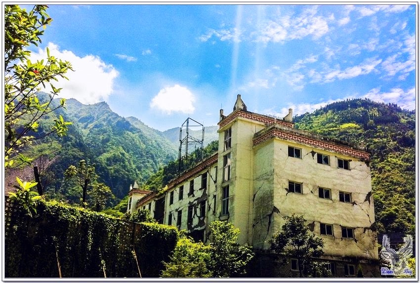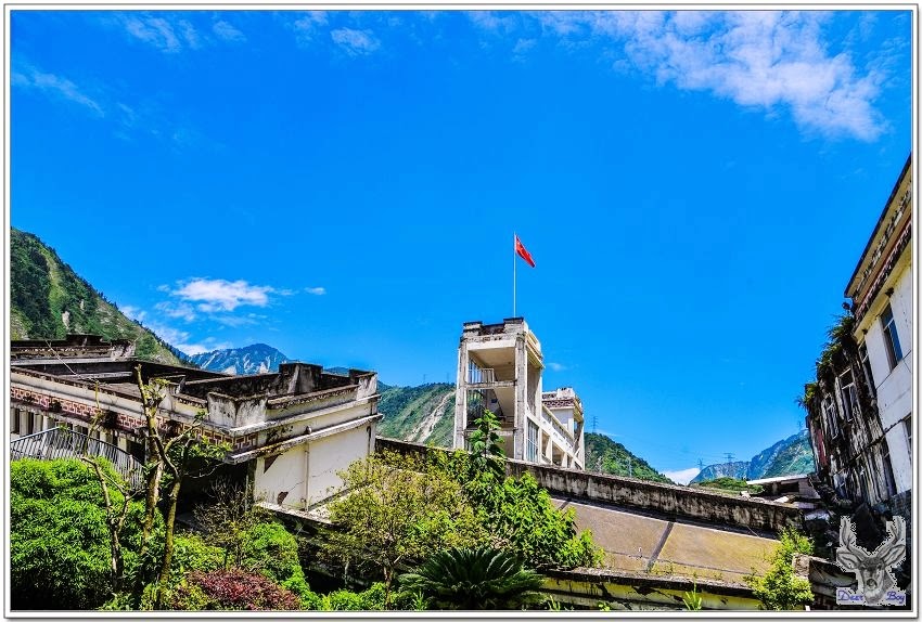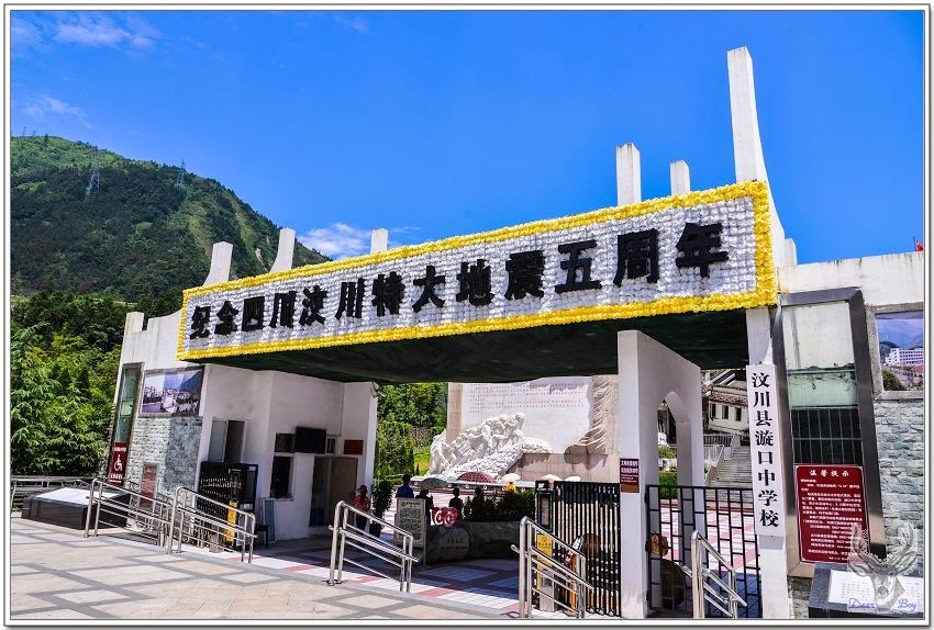 經過汶川縣漩口中學校,悼念『汶川特大地震五週年』,漩口中學是四川阿壩自治州的一所重點中學,原在汶川縣漩口鎮,因修建紫坪鋪水庫搬2006年遷至映秀鎮,結果在汶川地震受損嚴重,引發各界嚴厲抨擊施工品質,跟台灣的豆腐渣公共工程情況一樣爛!