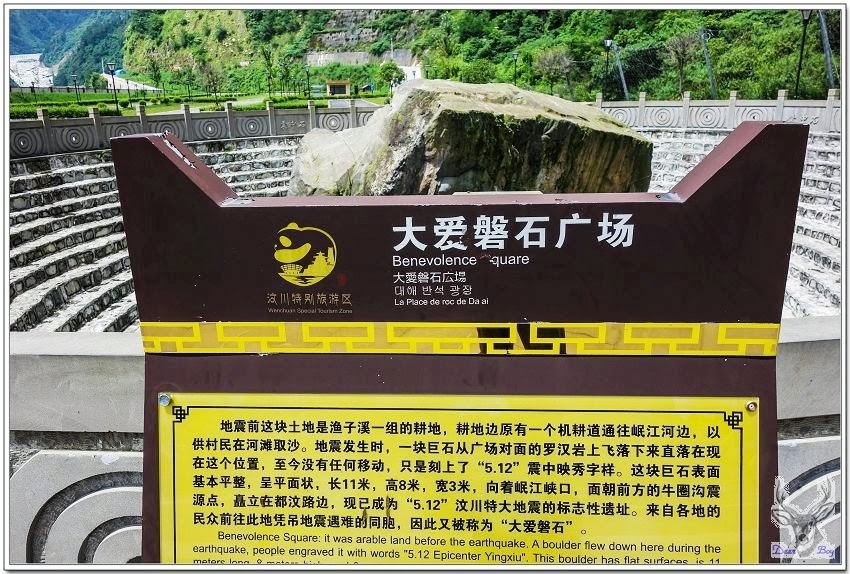 呂老師早上先帶我們前往2008年5月12日發生在汶川的8.3級大地震的震央中心點參觀(921集集大地震震級7.6),老灰狼在2009年8月在成都前往九寨溝,途中因為前幾日的暴雨將汶川地震後重建的道路又毀壞了,高速公路沒辦法下去,汶川整個周圍交通全部癱瘓,那回被迫終止行程,旅行社退費!這回來到成都,也是前幾天暴雨,汶川泥石流還上新聞,我們今天的行程是進入汶川?