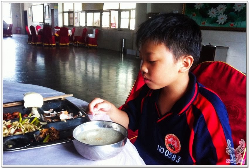 早餐固定都有稀飯、油條、饅頭,晚來一步就吃不到,油條扁扁的,跟台灣的油條不一樣,口感像油炸過的扁饅頭!