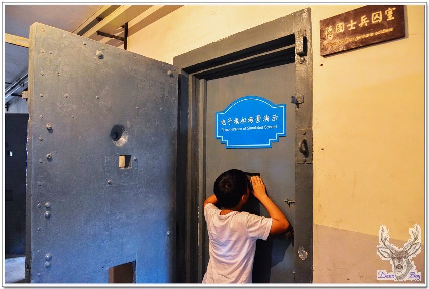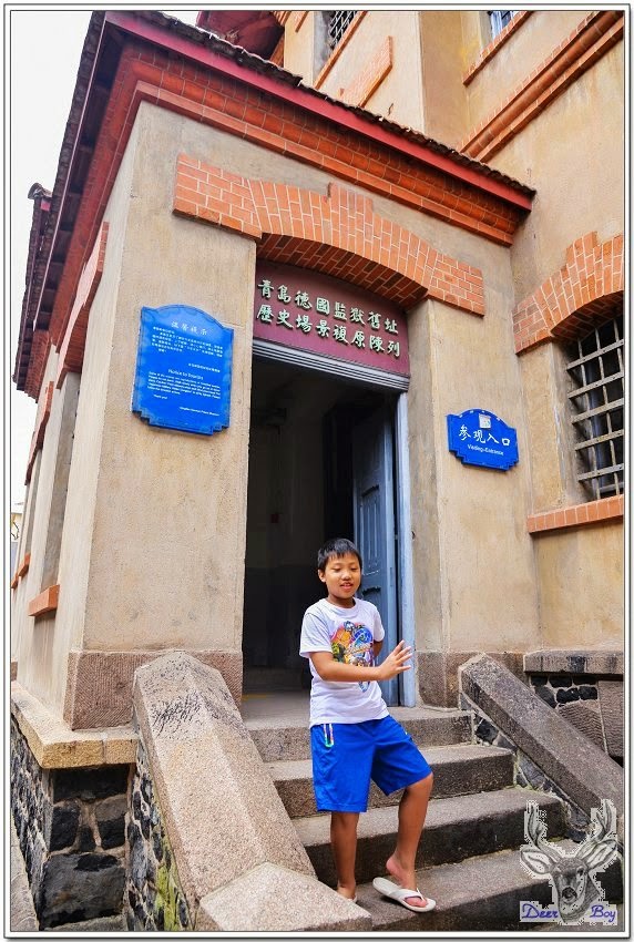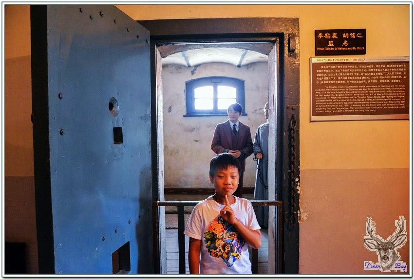一進場,Eric開始有些神情緊張起來,一直擺著北京氣功老師教他的氣功手勢,像比YA的姿勢,不是『淡水米露』回應我的FB照片:弟弟,那是女生比的蓮花指!~米露大大可能酒喝茫了!『德國監獄舊址歷史場景復原陳列館』在維基網站稱之為『膠澳歐人監獄舊址』,
