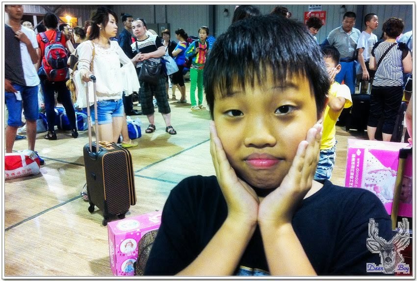 登船的景象宛如逃難一般,在大陸,人多就擠啊幾的,沒被撞倒、推倒算是自個兒的好運氣,我們還好有大行李箱當擋箭牌!