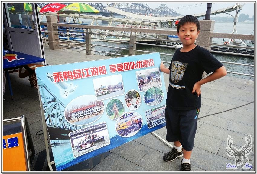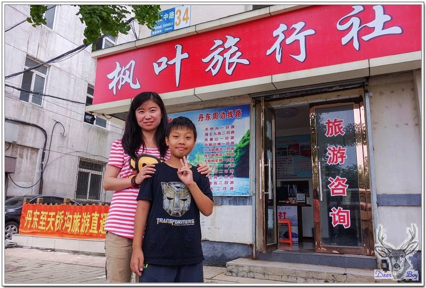 在鴨綠江公園附近找到好幾家旅行社,Eric叫我呆在外面休息,他一家一家問旅行社去朝鮮旅行的團費,幫我比價,這小子越來越精明囉,他回來跟我報告的結果是~~都一樣價錢,於是聽他的建議來到這一家『楓葉旅行社』,他說老闆比較親切!旅行社規模很小,老闆的確很親切,得知我們來自台灣,他說承辦過台灣旅遊團轉介給他們的案件,也接過台灣散客事先寄證件給他們承辦北韓簽證,但是還沒遇過臨時上門的散客,他幫我們詢問其他旅行業者以及北韓辦事處該怎麼處理我們的案例,最後答覆我們的內容是:這裡沒有像黑河市那樣的一次性觀光護照可申請。台胞必須具備6個月有效期限內的護照、相片2張,提前14個工作天提出申請,團費(不含簽證)1天人民幣1200,2天則是2400元!
