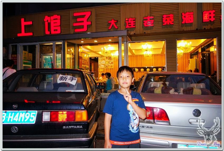 入夜了,趕緊帶Eric出門吃晚飯去,我們剛才找酒店時經過一家生意非常好的餐廳『上館子』大連老菜餐廳!