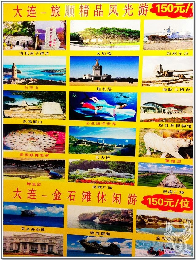 酒店旅遊櫃臺販售的大連一日遊行程,看起來沒啥興致!