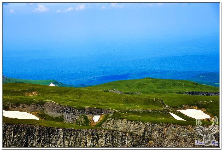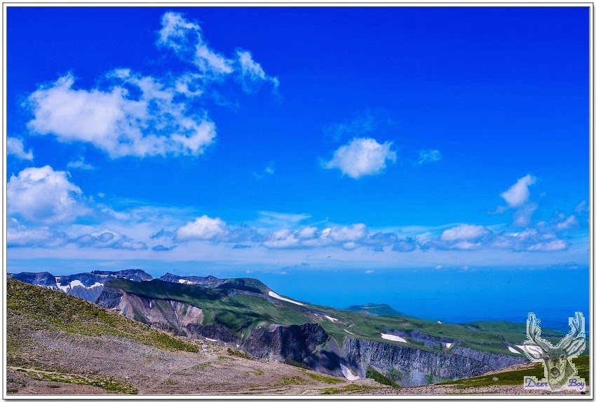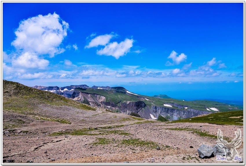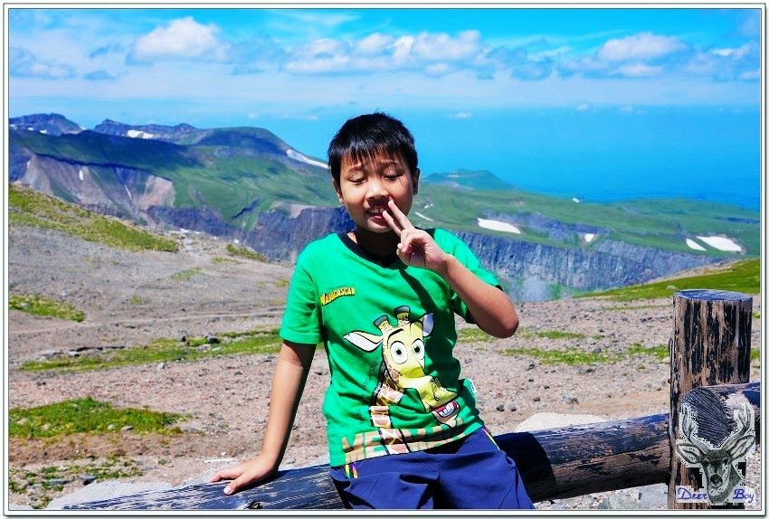 Eric背後的漂亮雪景當我用D800開最大的畫素+24-120 F4旅遊鏡拉最遠端拍照放大當作是望遠鏡才發現那些都是白色塑膠皮,老灰狼沒爆料您也可能以為那是美麗的夏季殘雪!