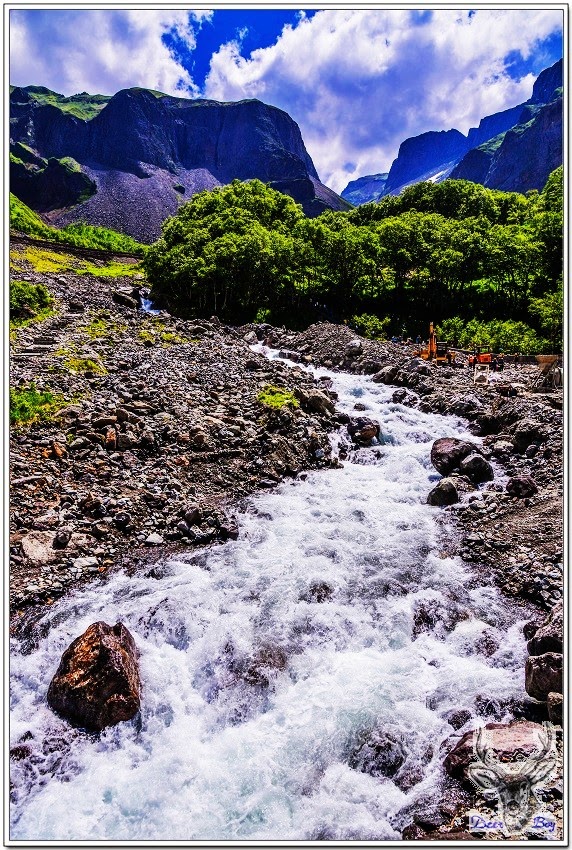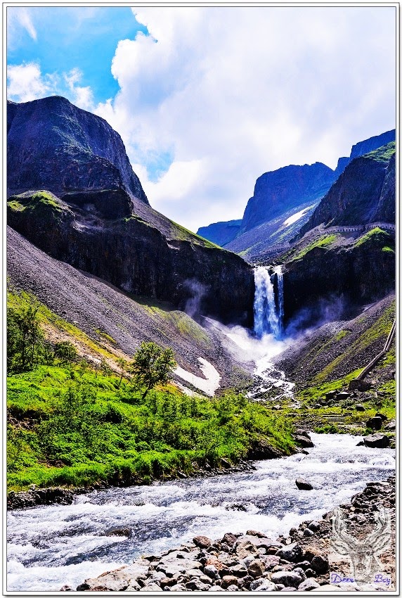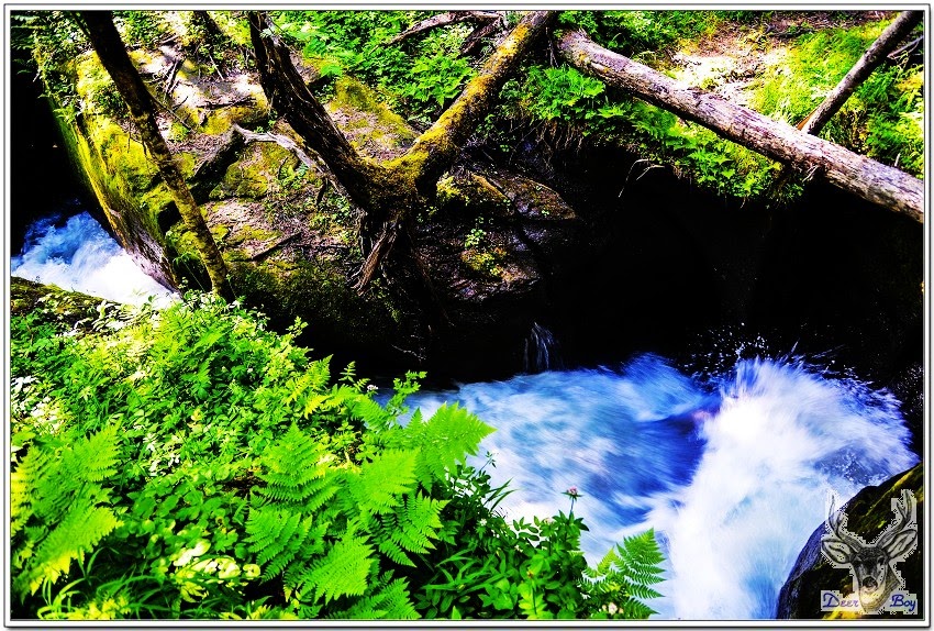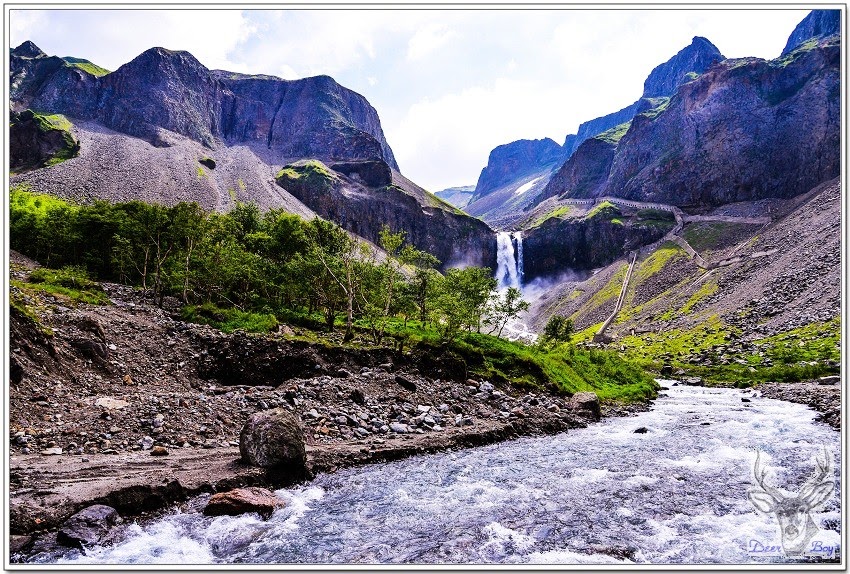瀑布下游的水用慢速拍照成了長白山冰川!