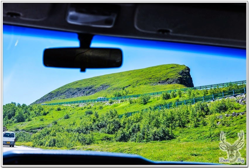 第一段環保車(85元)已經結束,第二段天池主峰車票80元是搭9人座小巴,師傅有吩咐安全帶要綁緊,狂猛的九彎十八拐讓遊客們甩過來拋過去,非常刺激好玩!