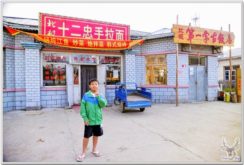 這附近沒有大餐廳,只有小吃店,老師們分頭找有什麼比較特殊的食物,回來匯總消息,都說北極村這裡的商店價錢都特別貴,也沒什麼特色小吃,於是決定吃這家『北極十二忠手拉麵』!