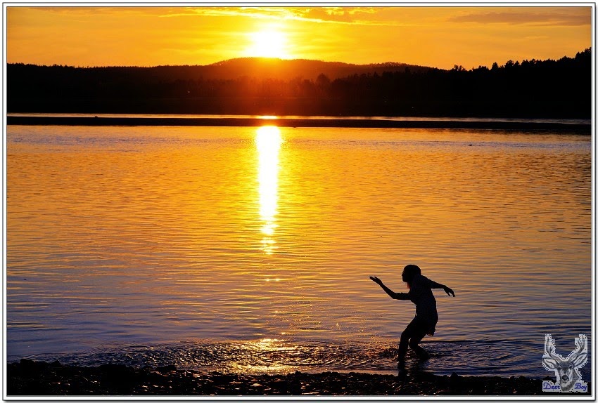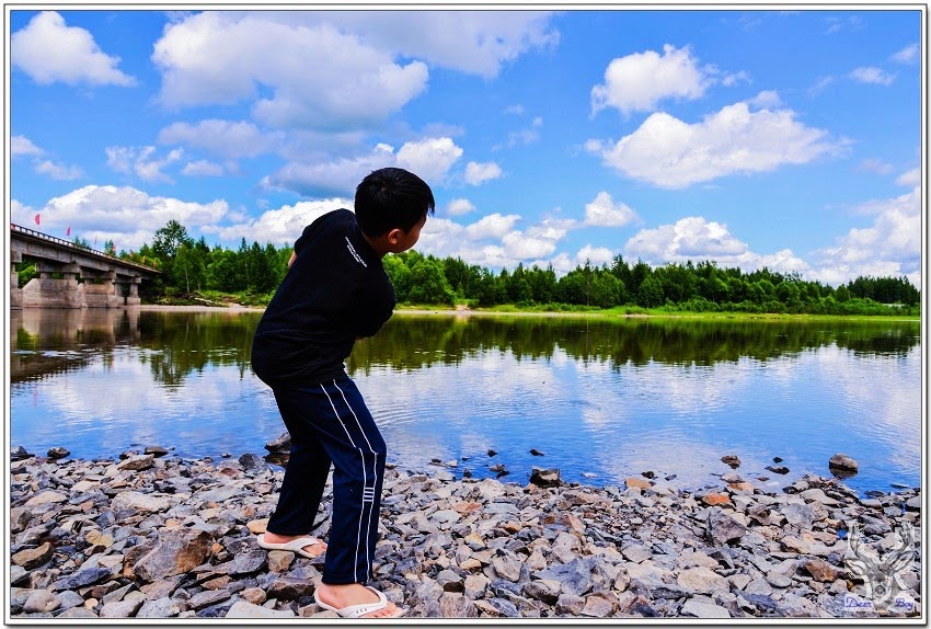 老灰狼小時候夏天特別愛偷溜去河邊玩水,還得研究如何不被老媽檢查指甲摳出玩水過的白屑痕跡,當然不能傳授給Eric,只能跟他PK打水漂兒,老灰狼輸得很慘,因為~~老啦!