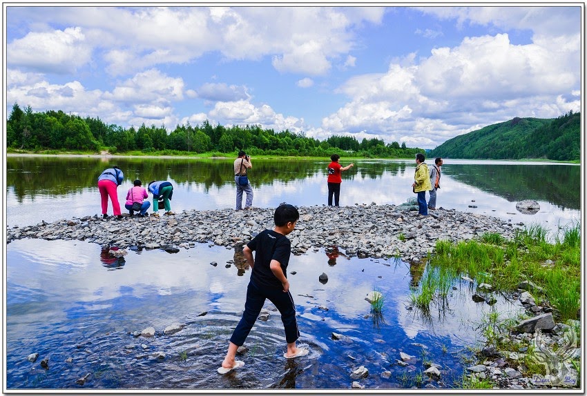 前往烏蘇里淺灘路上曉宇在這水灘放我們下車休息,這裡是他的秘密基地,他沒事或心情不好的時候就會來這裡閒晃,他也熱愛攝影,他在這裡拍下很多照片都參加攝影比賽得過獎喔!