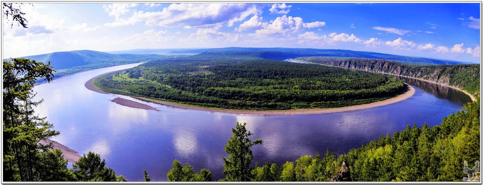 景區地勢平坦或起伏,額木爾河蜿蜒而過,九曲十八彎猶如銀鍊飄舞!
