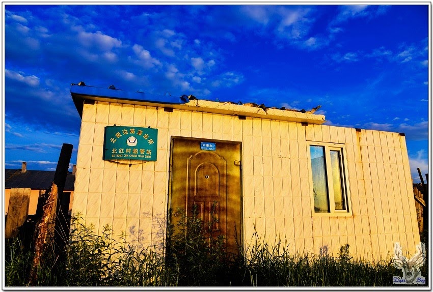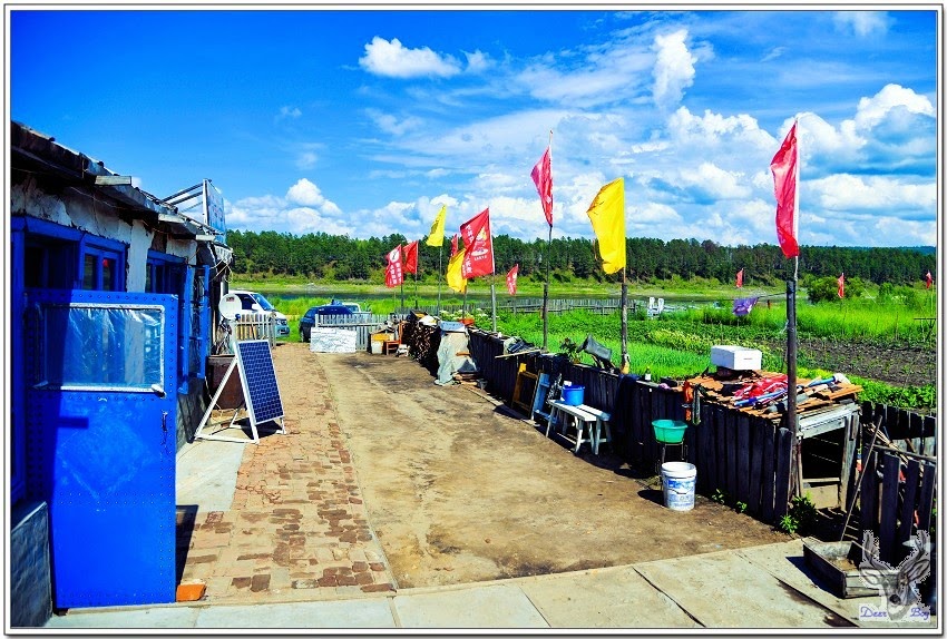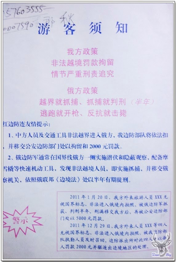 民宿門上告示中俄越界警示,這裡距離黑龍江源頭不遠,水不深,偶有中俄越界拍照或登岸,都會被駐守的武警查獲判重刑!曉宇提供北紅村的簡介是:北紅村在地圖上顯示大草甸子,古風純樸、靜謐清新,景色宜人,是一座中國最北沒有被開發過的原始小村莊。村莊不大,全是原生態木刻楞房子,村民靠種田和捕魚為生。手扶拖拉機、摩托車、牛馬是主要勞動工具。房後就是中俄界江,晨霧經常籠罩小村和江邊,江邊的晨霧順著水勢緩緩地流動,與俄羅斯也是一江之隔。村子不大,人口也不能與北極村相比,北紅村更多的是遠離城市喧囂的那種安靜。………..