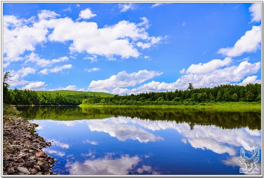 黑龍江映畫著白雲藍天,對岸就是俄羅斯領土,曉宇跟我們說明從這裡開始行程是往西行,幾乎都沿著黑龍江跑,所以會欣賞到黑龍江許多不同的風情!