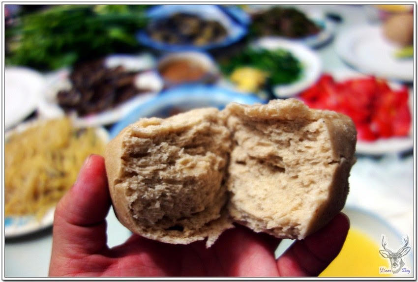 饅頭、全麥饅頭是別處農家種植、碾磨不漂白的麵粉製作,所以看起來有點帶黃、帶灰色,嚼起來那濃厚的麥香、嚼勁、口感只有〜超感動來形容!