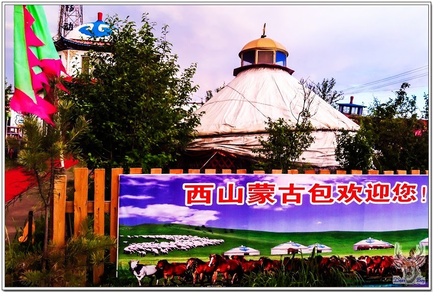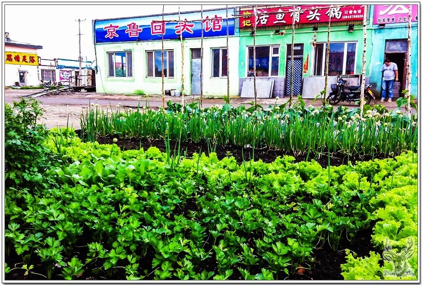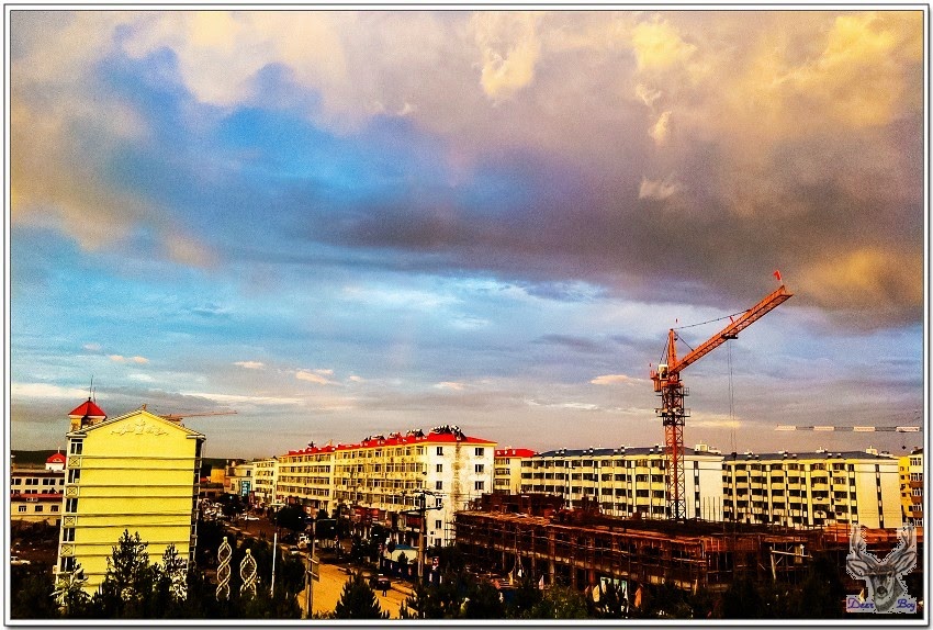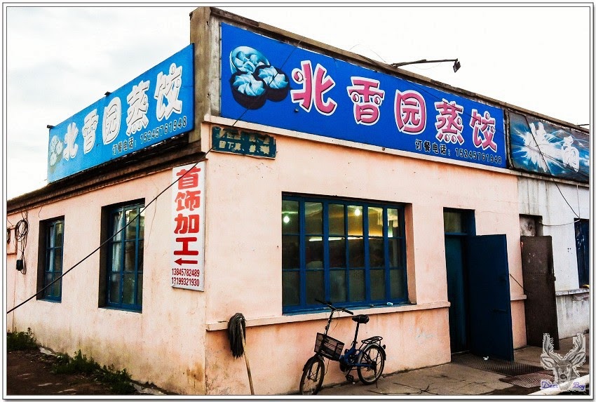 還好,出籠上桌的蒸餃都好吃,他們說蒸餃皮比水餃皮更花功夫,皮要夠桿的夠勁,不能太厚,太薄了就容易破,吃的出老闆娘的好手藝!一人一籠吃撐了,牛教授提議上西山可以欣賞到整個漠河縣城,我們也沒計畫於是跟著牛教授走走逛逛,這時太陽西斜,紅光照耀,身上只有iphone 4可用!