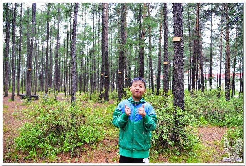 『1987年大興安嶺火災』當時沒有被焚燒到的地方有三處,一處是剛才參觀的『五六森林火災紀念館』,一處是後來興建的漠河縣政府,第三的地方是Eric身後的『松苑』!當地居民深信這三個位置的靈氣特別強,所以曉禹特別帶我們走進松苑讓大家用力的吸取一些靈氣,強身護體!