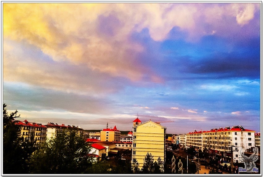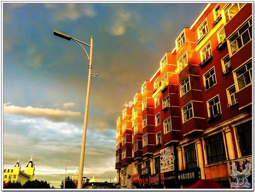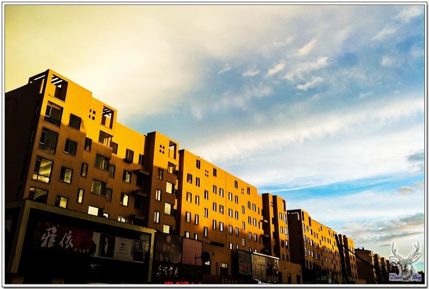 一人一籠吃撐了,牛教授提議上西山可以欣賞到整個漠河縣城,我們也沒計畫於是跟著牛教授走走逛逛,這時太陽西斜,紅光照耀,身上只有iphone 4可用!