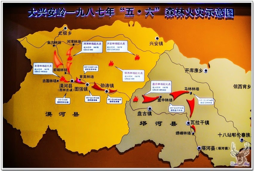 這是當地1987年5月6日發生中國政府1949年以來最嚴重的森林大火,內容太多,有興趣的朋友請直接點閱維基網站吧:1987年大興安嶺火災