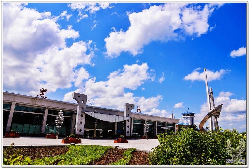 這裡藍天白雲好時光,北京下暴雨,航班delay!因為黑河沒有到漠河的火車或大巴,之前還不會使用攜程網的機票查詢系統,所以原本的計畫路線是結束黑河俄羅斯行程後搭火車返回哈爾濱,再從哈爾濱搭火車前往漠河,醬子會整整浪費2~3天左右的時間在交通上,沒想到在哈爾濱剛好經過機票代售處,剛好黑河有飛漠河的機票,也剛好剩最後2個機位,還真的剛好跟這群在俄羅斯旅遊時同一團的北京教授老師們同一班機,真的都是緣分啊!