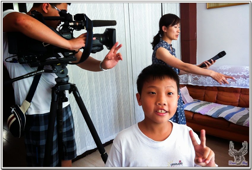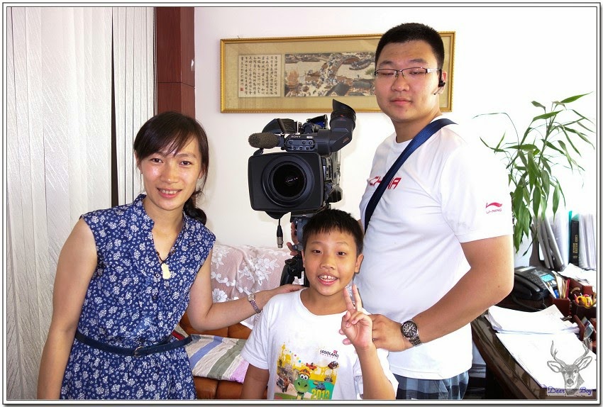 這時剛好有黑河地方電視台旅遊台前來做專訪!據說這家旅行社專辦俄羅斯行程口碑不錯,黑河政府目前大力推廣雙邊貿易與旅遊,所以旅遊台選擇這家旅行社做宣廣,胖嘟嘟老闆特別跟女主持人介紹來自台灣的老灰狼父子倆,很榮幸能接受節目的採訪,讓喜歡拍照卻不喜歡被拍的老灰狼猛吃螺絲 orz!