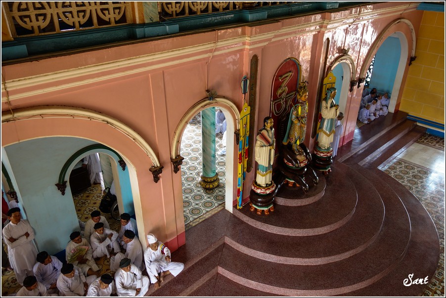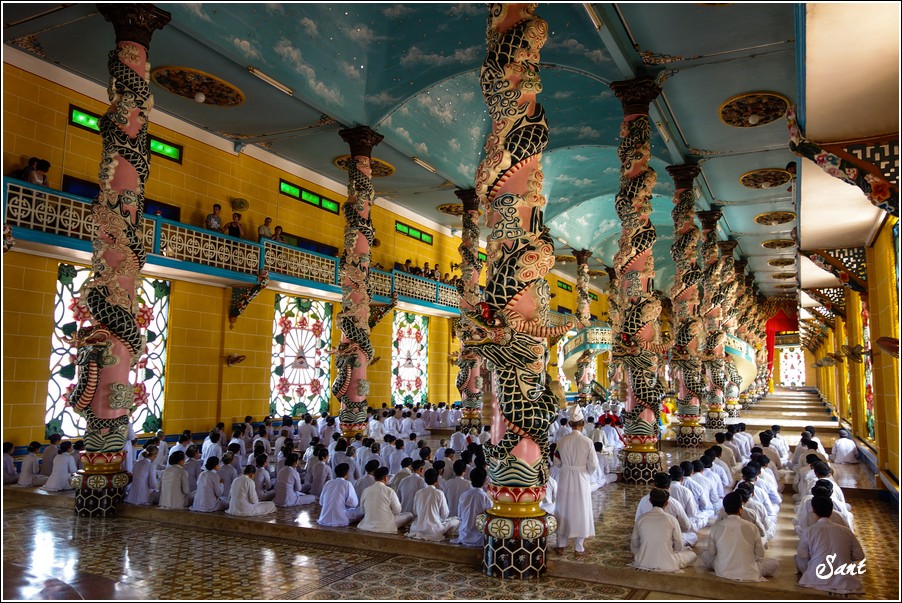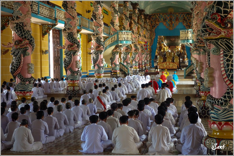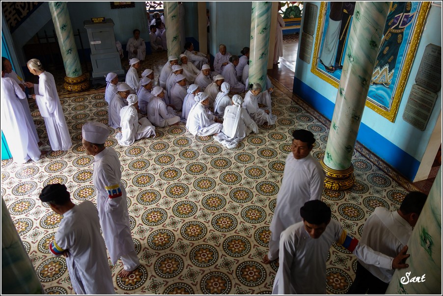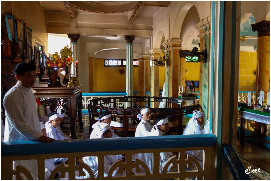 參加法會的當地越南人都穿白衣白帽,手臂綁彩布章,有的是頭綁白布巾,令狼感覺似乎是參加一場喪禮。