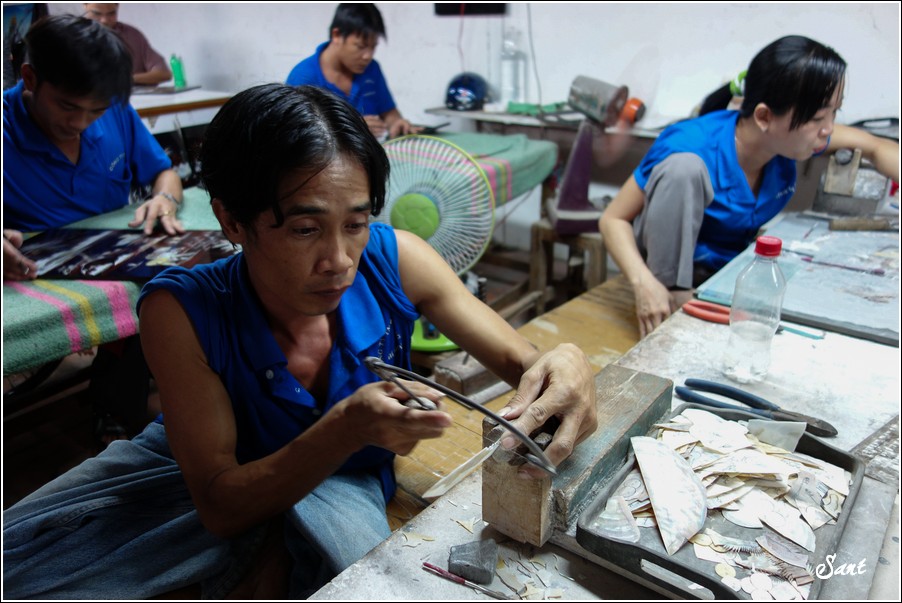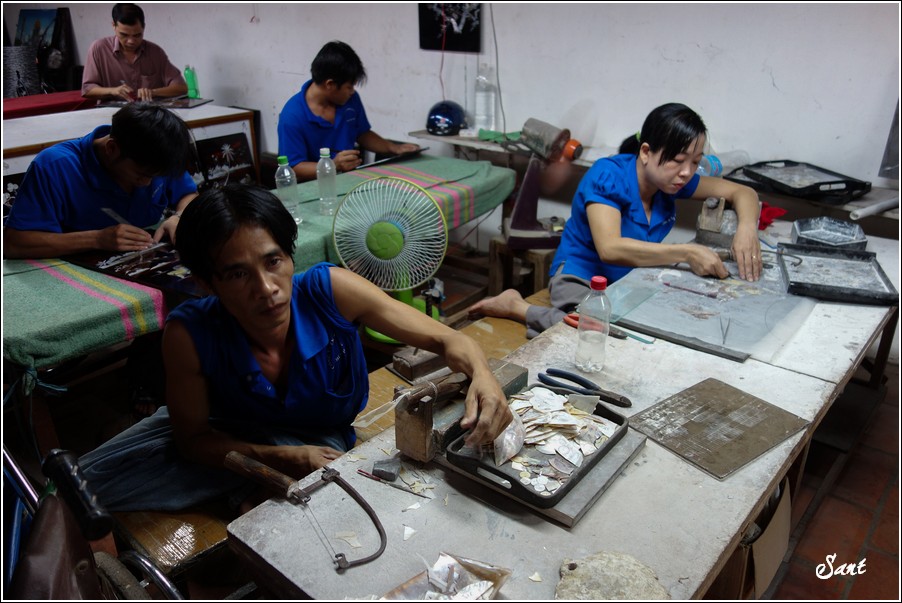 既然是參加旅行社的tour,不免俗地會被安排參觀特產店,這個位於胡志明市郊區的一處紀念品生產中心,規模頗大,有好幾處生產、加工區。