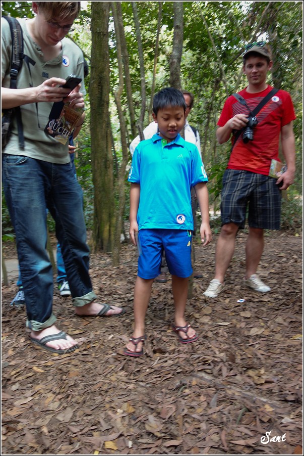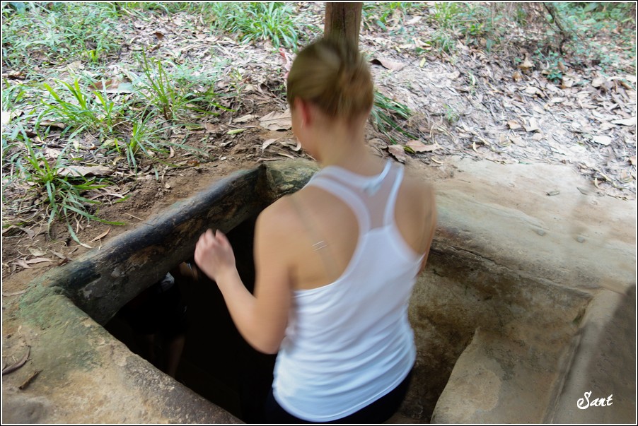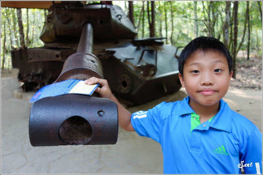 越戰阿伯讓我們實地體驗古芝地道,想幫小狼拍照留念,這小子一溜煙地不見了,只好往後拍一個老外當作實際比例。